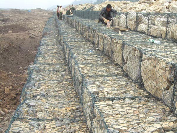 包塑石笼网主要用作河道、岸坡、路基边坡护坡结构。既可防止河岸遭水流、风浪侵袭而破坏,又实现了水体与坡下土体间的自然对流 交换功能,达到生态平衡。坡上植绿可增添景观、绿化效果。